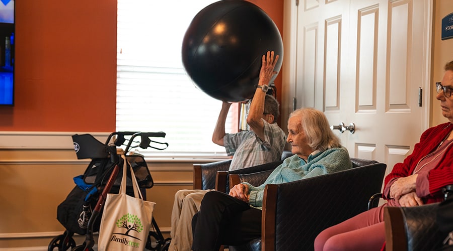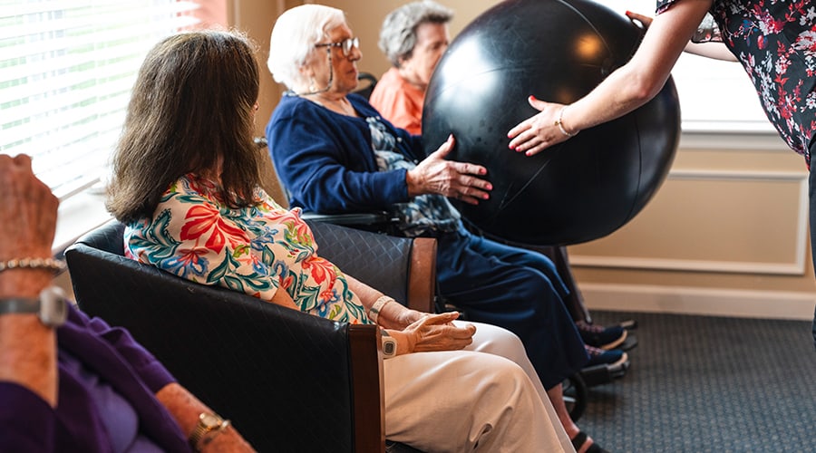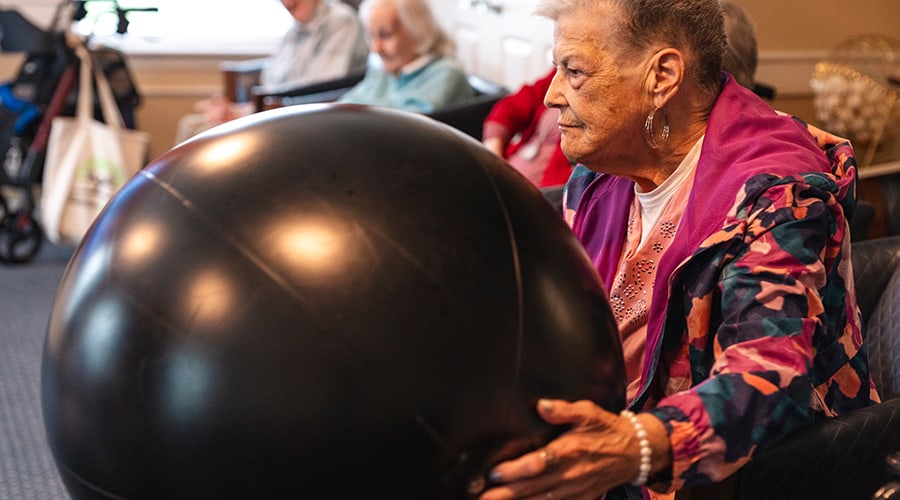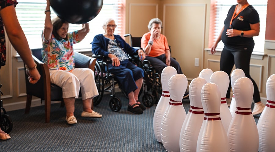 Assisted living residents enjoy about 14 programs per week (two per day minimum), including events like bowling, mini golf, toss across, sit and stretch, chair yoga, and a walking club.